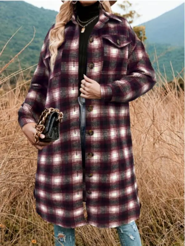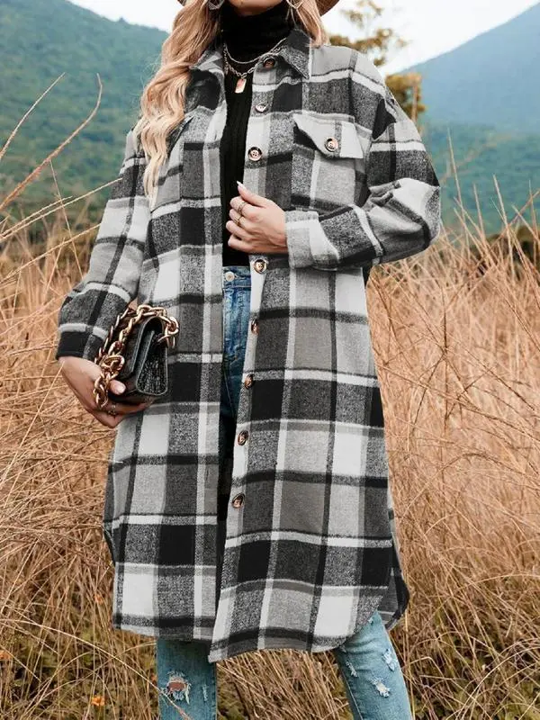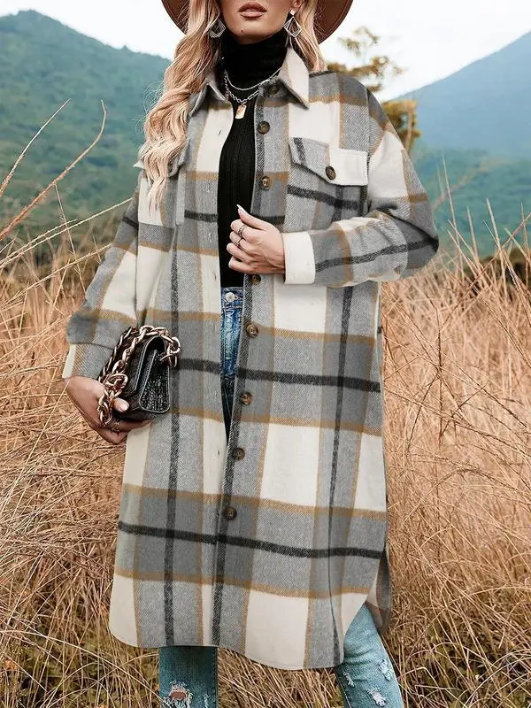 | Design | Plaid Print, Split Side, Drop Shoulder |