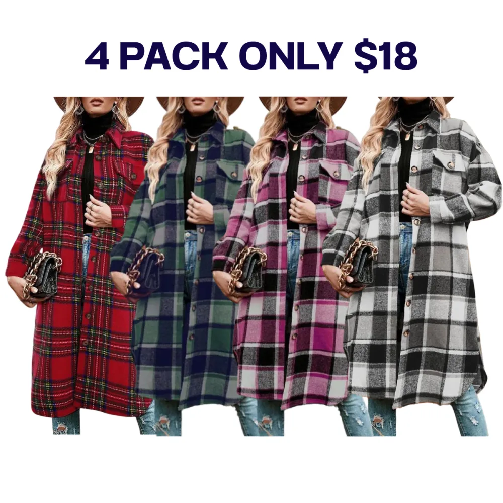 【8-Piece Complete Collection】Set includes eight plaid print coats in various color combinations, providing versatile outerwear options for your winter wardrobe