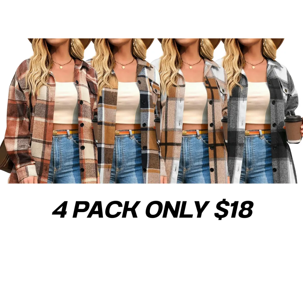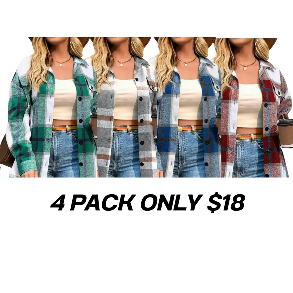 8-Piece Complete Collection】Set includes eight plaid shackets in various check patterns, providing versatile layering options for plus size women