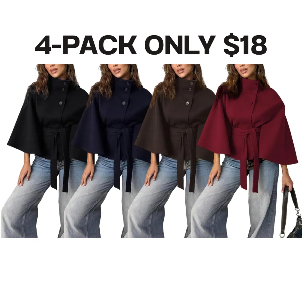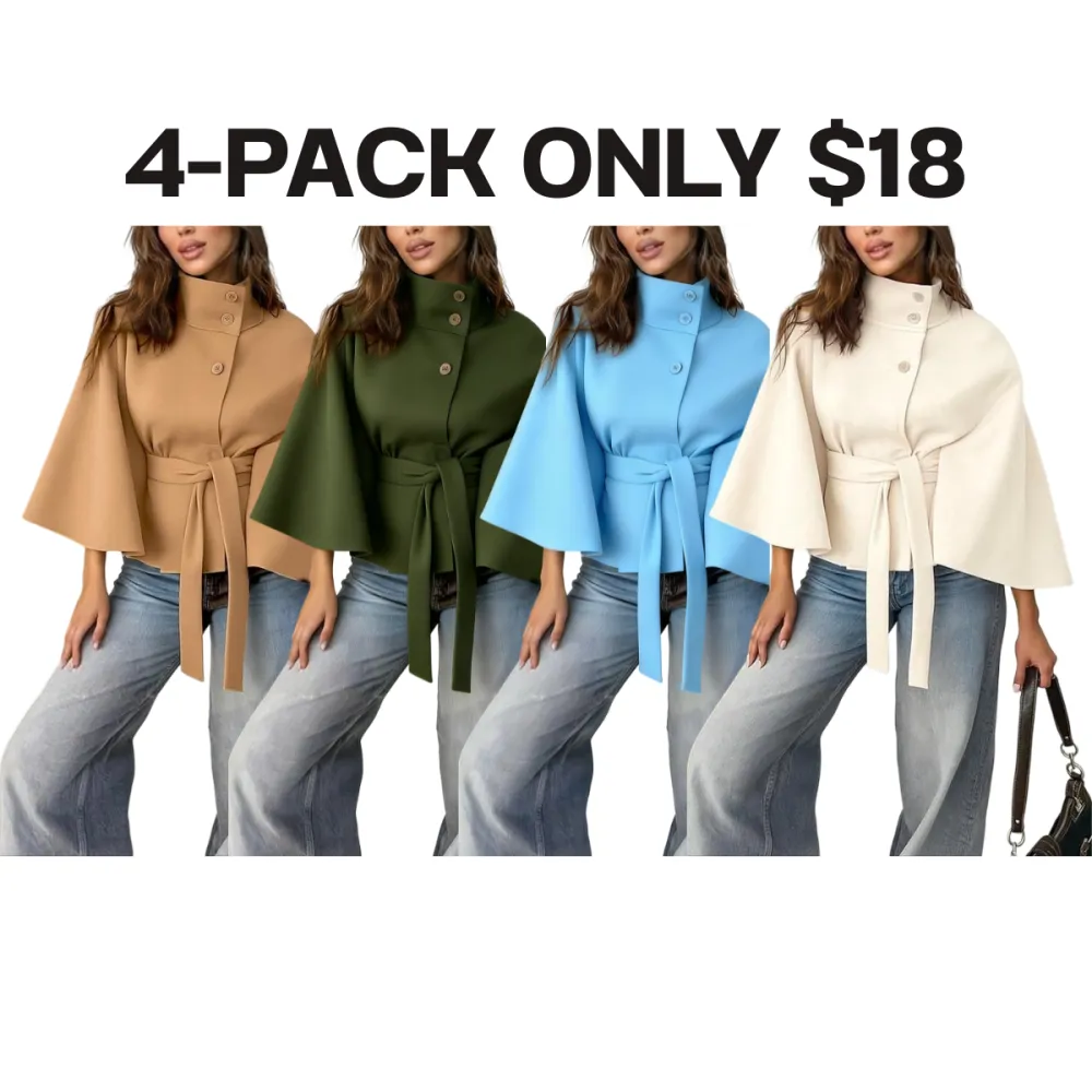 【8-Piece Complete Collection】Set includes eight elegant cape coats in versatile solid colors, offering multiple sophisticated outerwear options for your cold-weather wardrobe