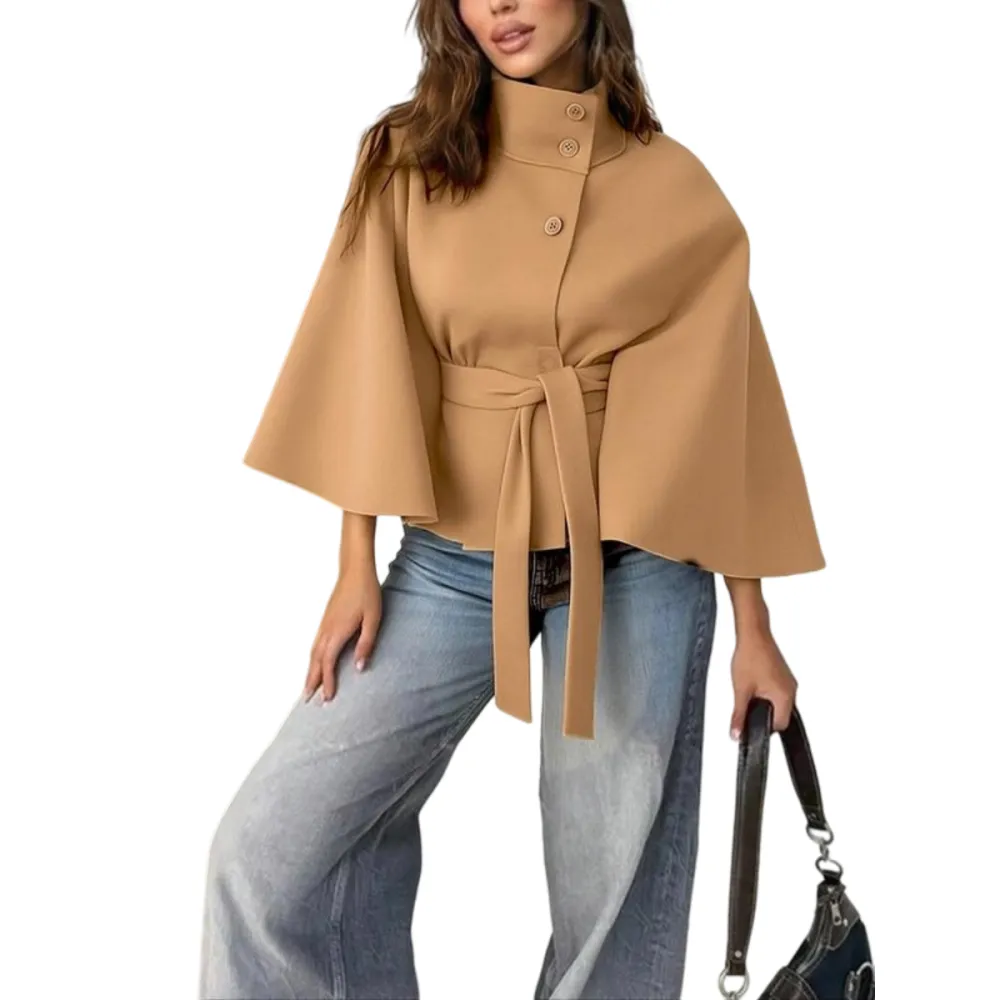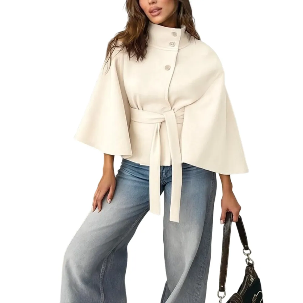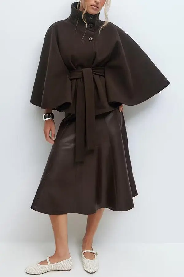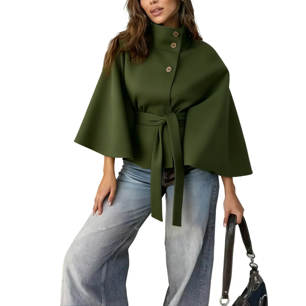 【Flowing Loose Fit】Generous cape cut with front buckle closure offers comfortable freedom of movement while maintaining an elegant, sophisticated appearance
