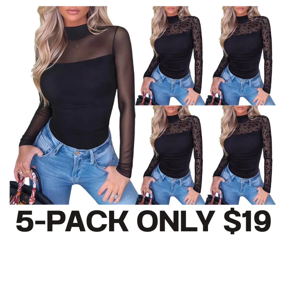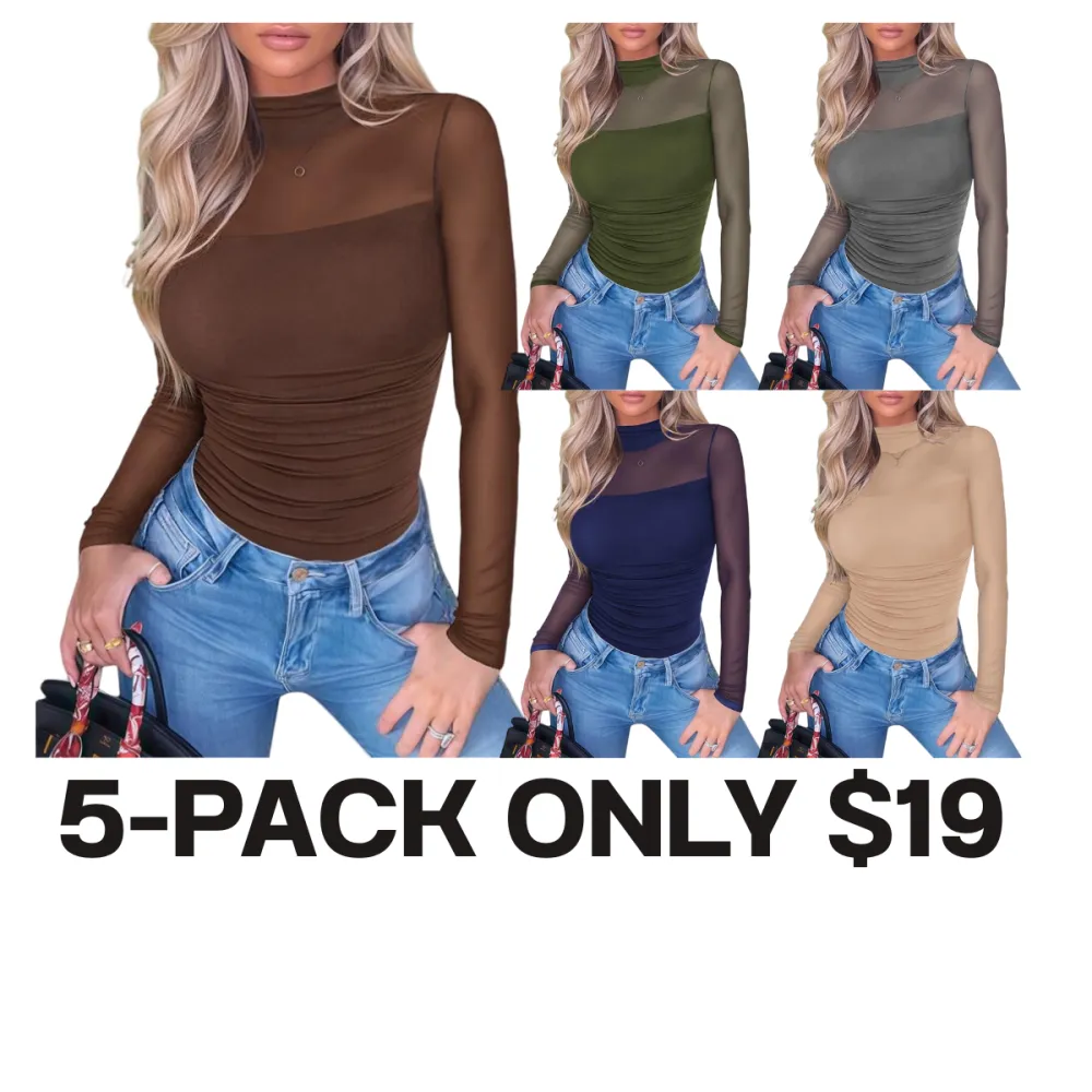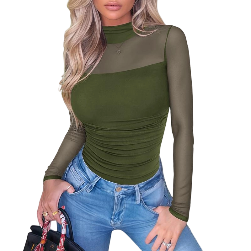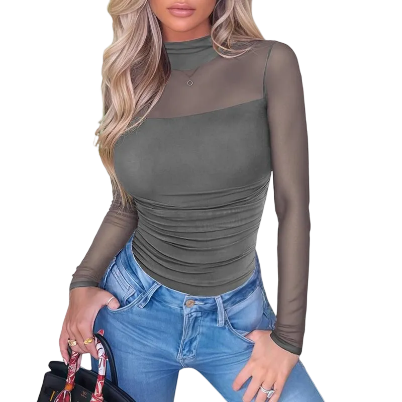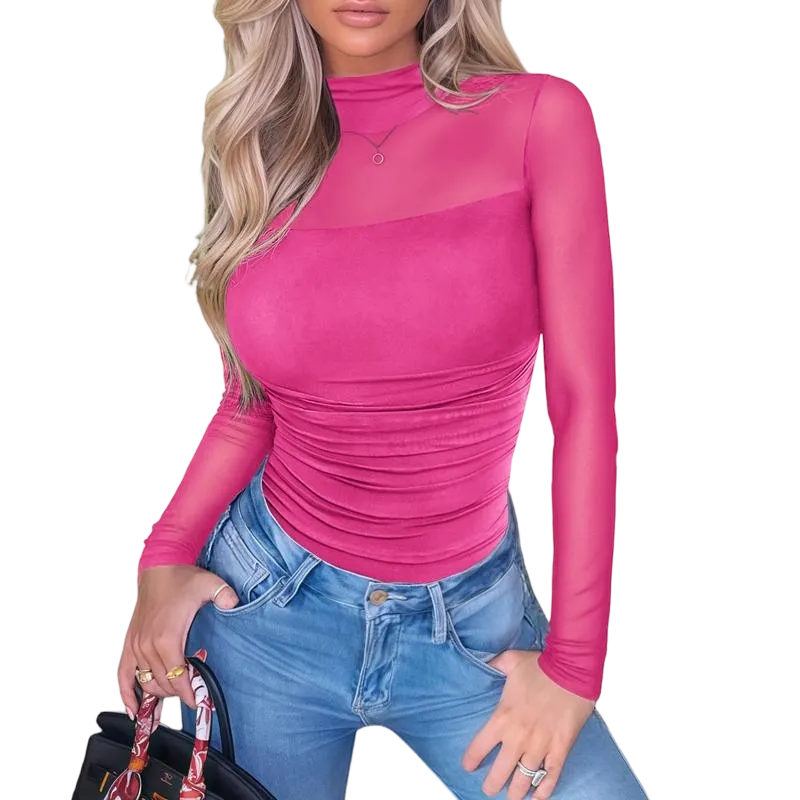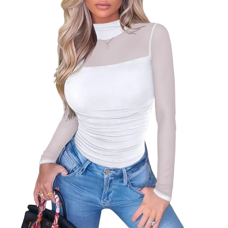 Elegant Turtleneck Design】Sophisticated high neckline with mesh long sleeves creates a fashionable silhouette that's both stylish and versatile
