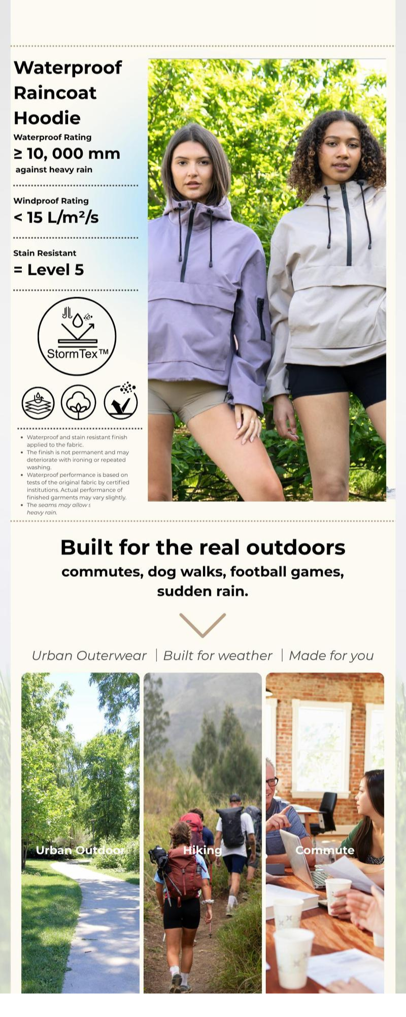 Fabric Features Water-resistant, breathable, durable, protects against light rain/moisture