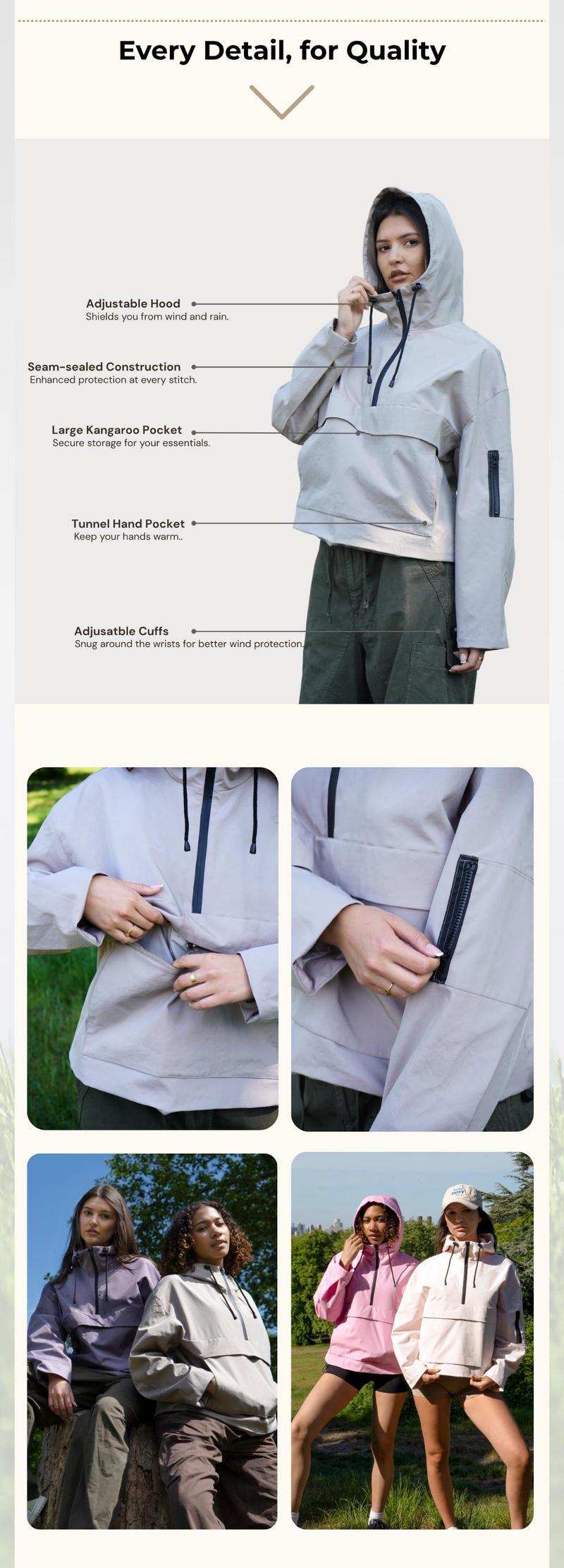Women's Waterproof Fall Half-Zip Oversized Hoodie Jacket