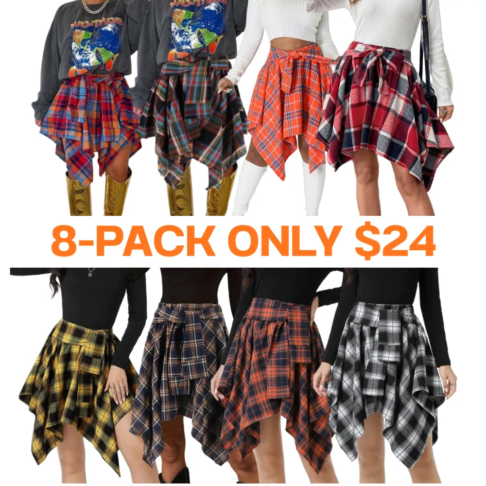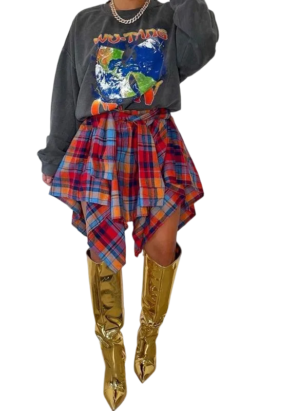 Women's Fashion Plaid Print Asymmetrical Hem High Waisted Skirt