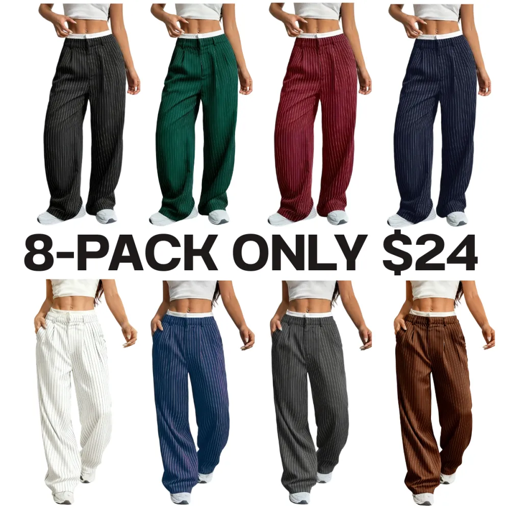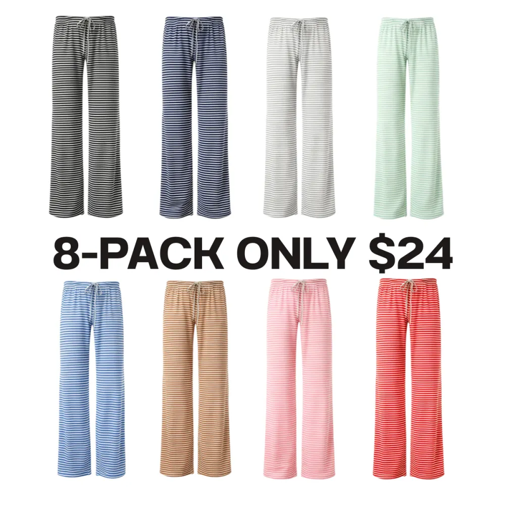 Women's Striped Print Drawstring Waist Straight Leg Pants