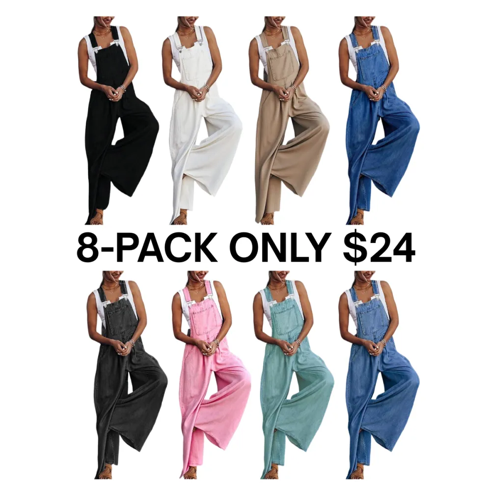 Women's Denim-Print Wide Leg Overalls Jumpsuit