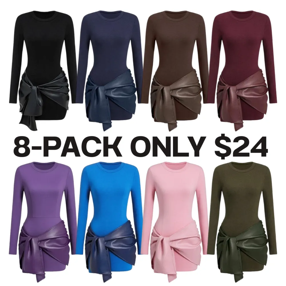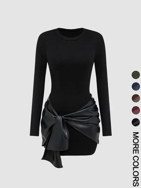 Women's Patchwork Knot Side Long Sleeve Dress