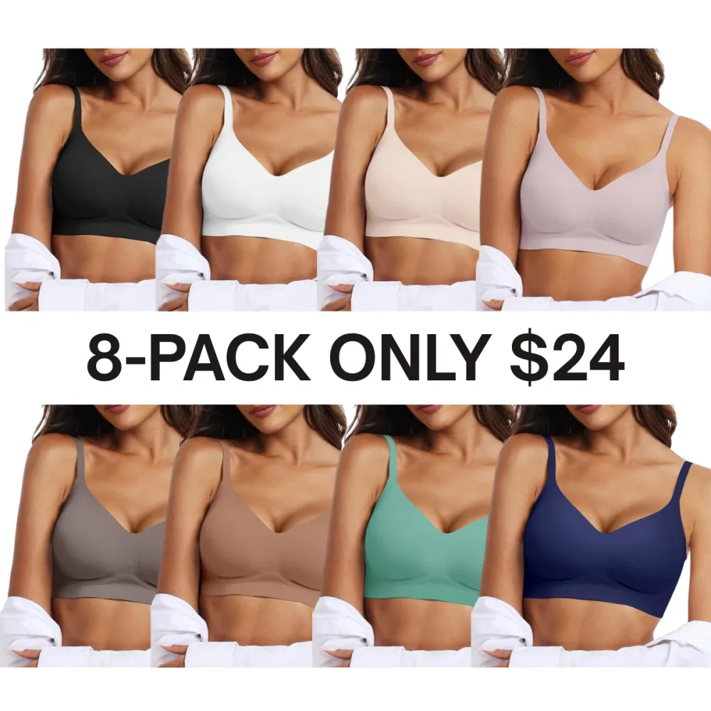 Women’s Everyday Seamless Wireless Bra – Push Up Deep V Bralette