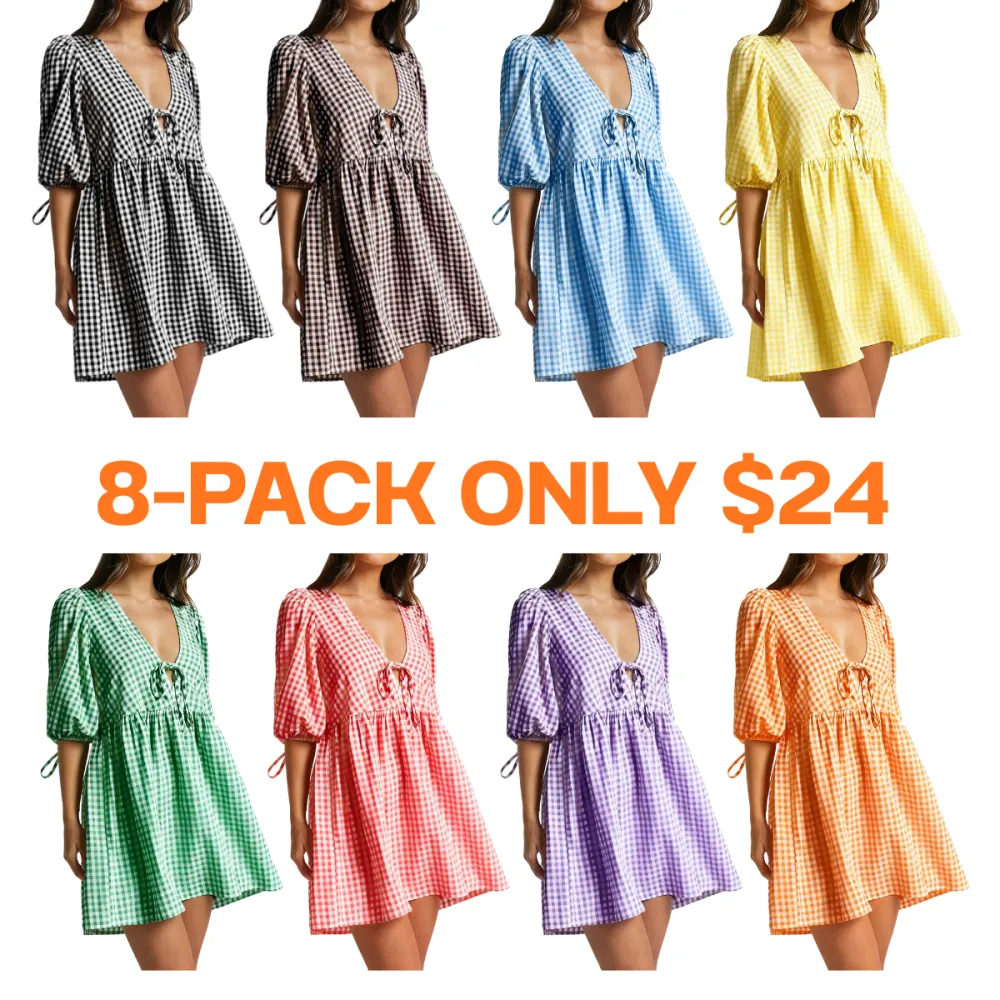 Women's Maternity Plaid Dress, Half Sleeve Bow Square Neck Loose Short Dress