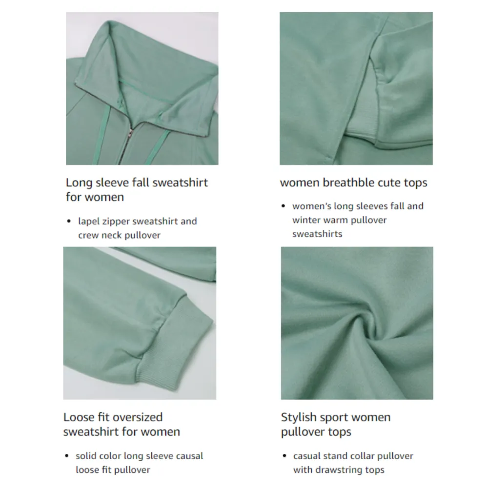 Women’s Soft Long Sleeve Drawstring Pullover Casual Loose Sweatshirt With Zipper