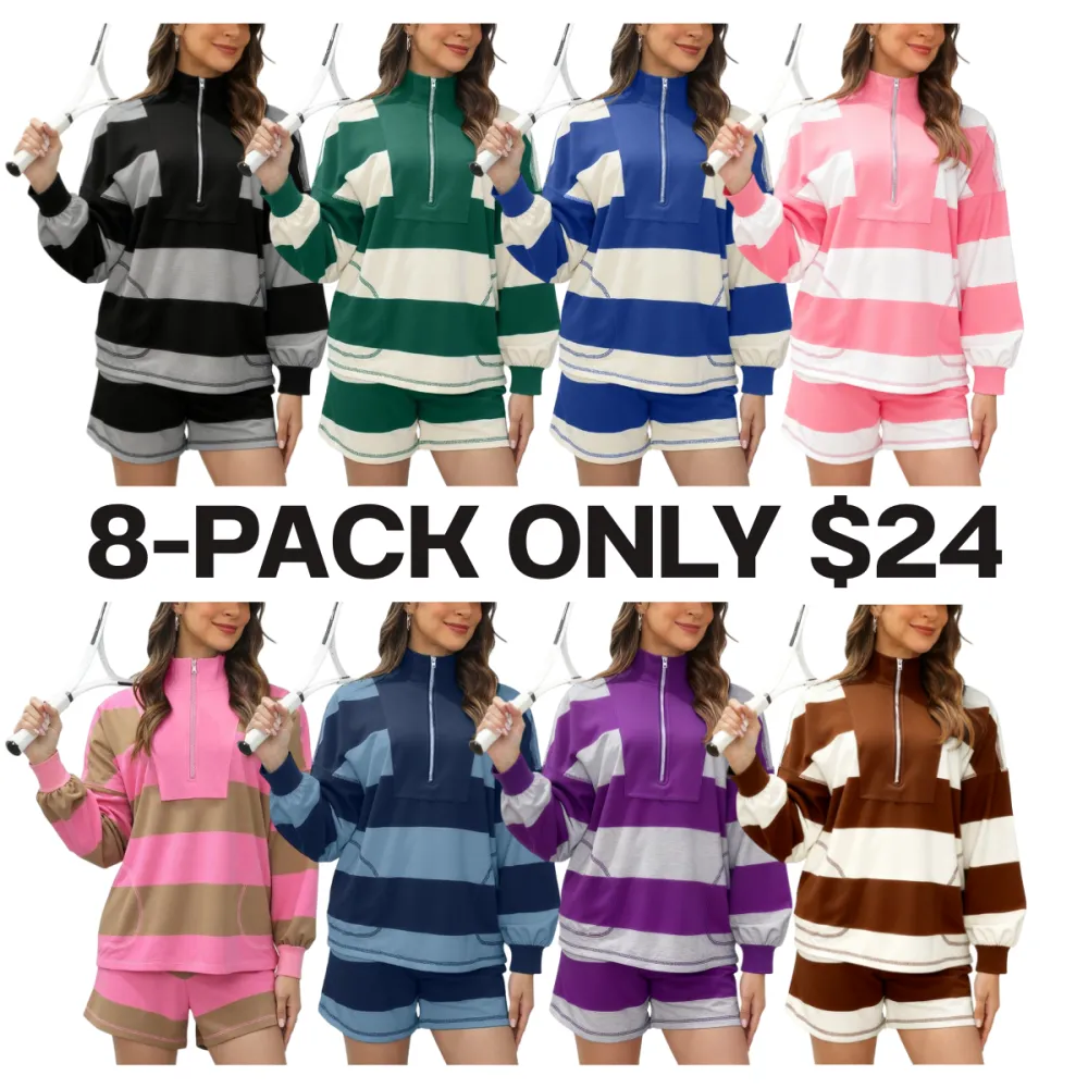 Women's Lounge Set 2 Piece Striped Long Sleeve Half Zip T-Shirt & Shorts Workout Tracksuit