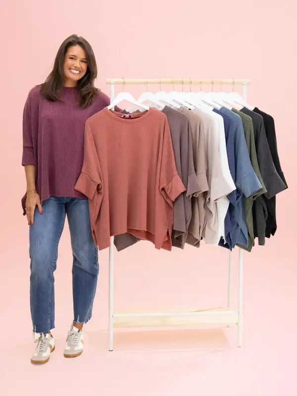Women's Raised Rib Easy-Fit Dolman 3/4 Sleeve Top
