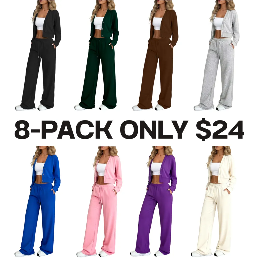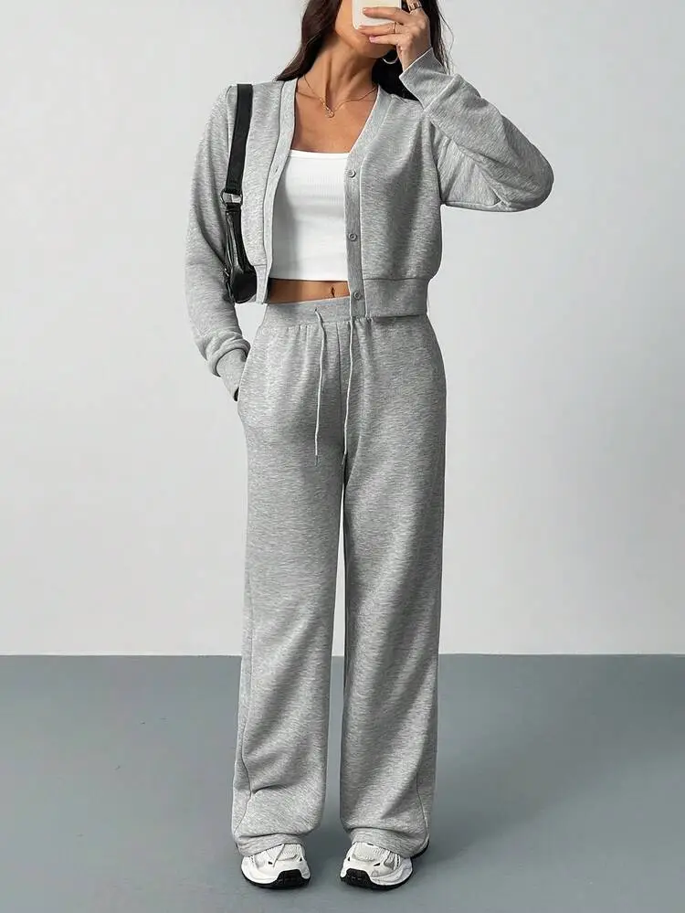 Women's Two-Piece Casual Set, Wide-Leg Pants & Loose-Fit Cardigan Jacket