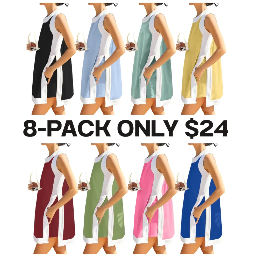 Women‘s Casual Two-Piece Set – Color Block Sleeveless Pullover Top & Matching Shorts with Pockets