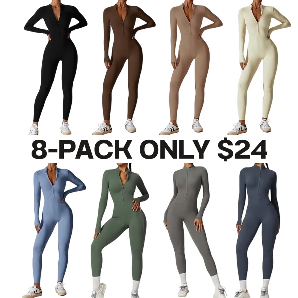 Women's Solid Color Half Zip Mock Neck Sports Jumpsuit