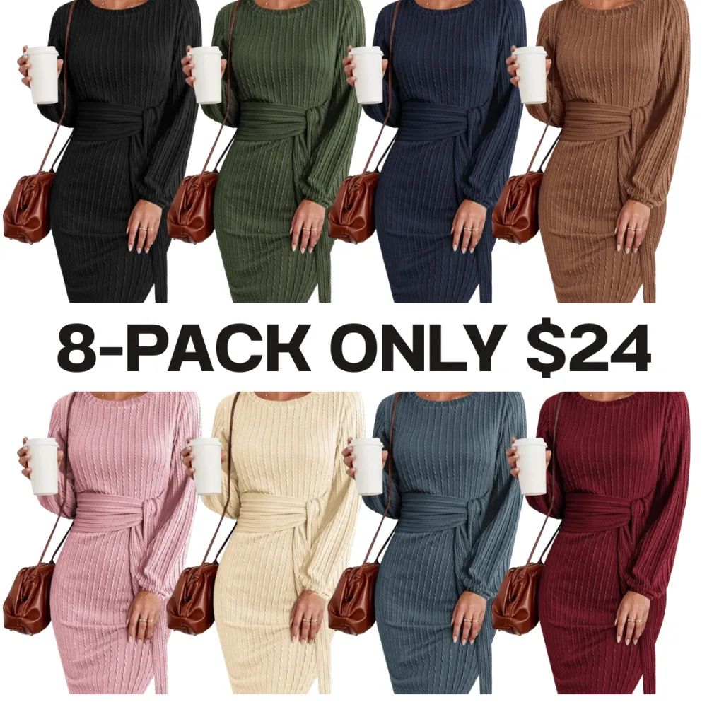 Women's Elegant Knit Dress Long Lantern Sleeve