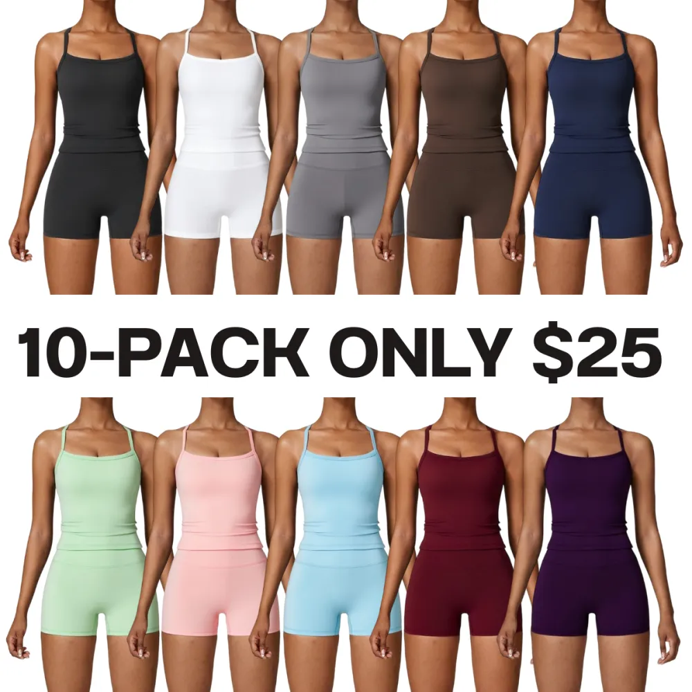 Women's 2-Piece Backless Sports Set: Sleeveless Cami & High-Waist Shorts