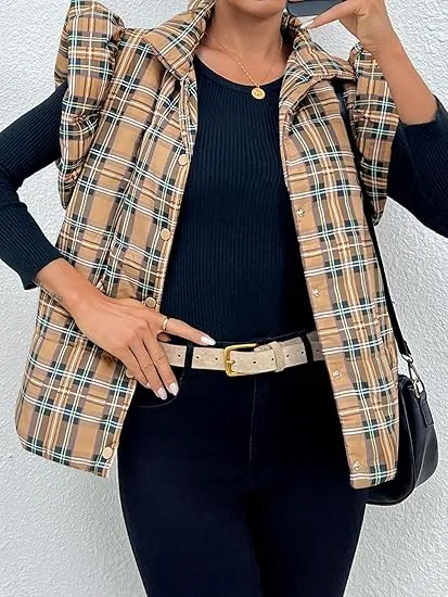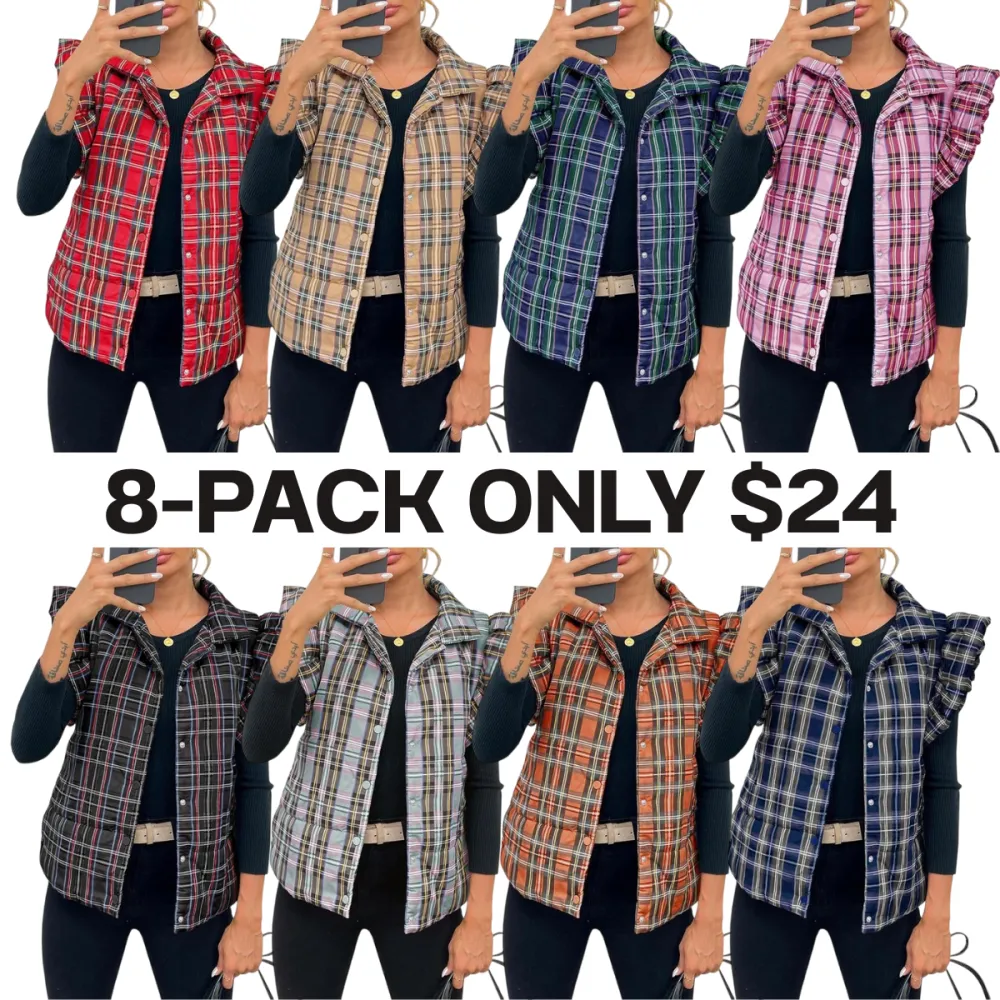 Women's Plaid Ruffle Trim Quilted Vest