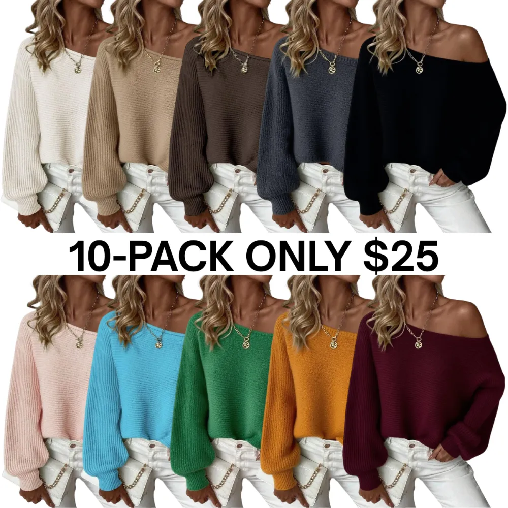 Women's Off-Shoulder Boat Neck Pullover Sweater