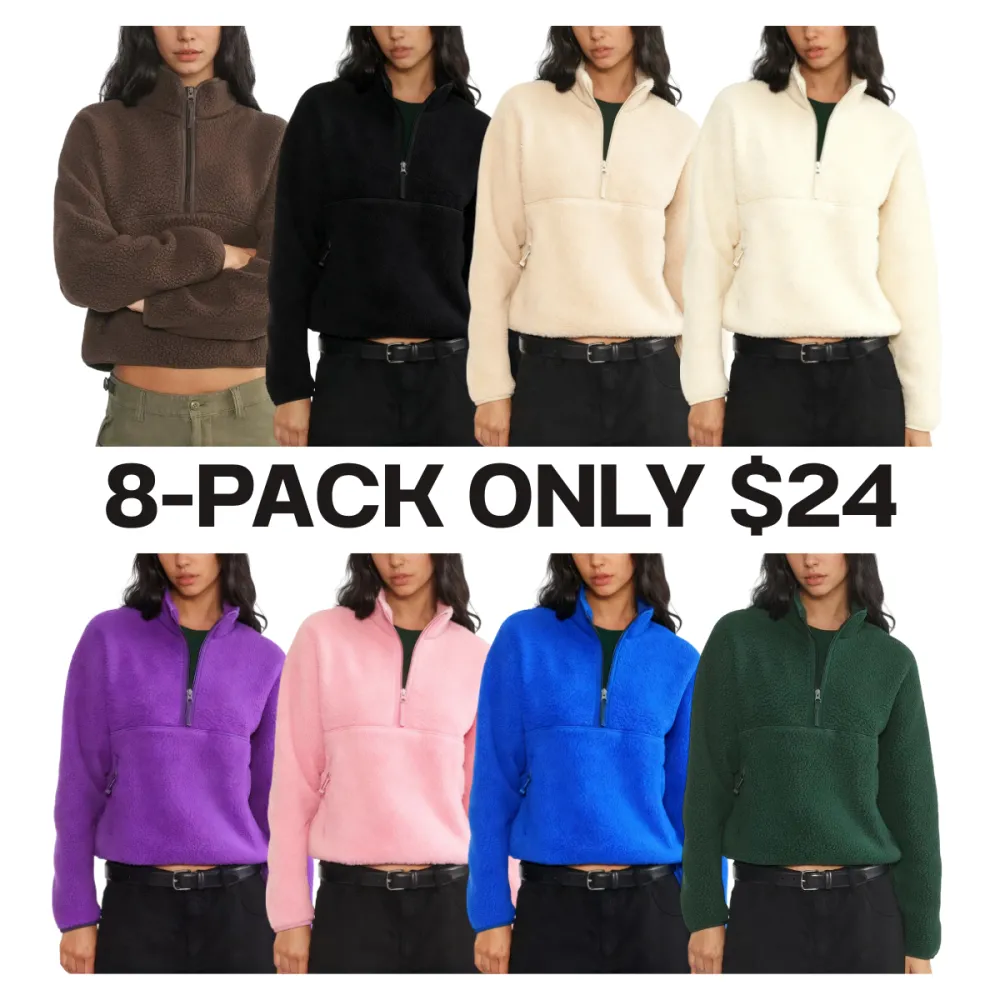 Women‘s Fleece Sweatshirt – Cropped Half-Zip Sherpa Pullover with Zipper Pockets