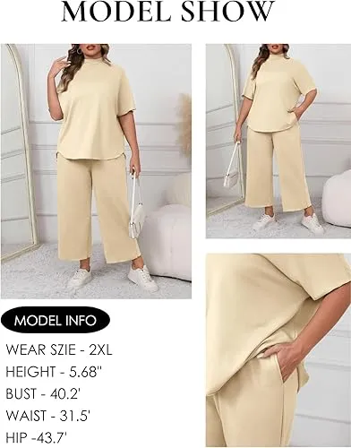 Women’s Casual Two Piece Outfit – 3/4 Sleeve Top & Wide Leg Pants